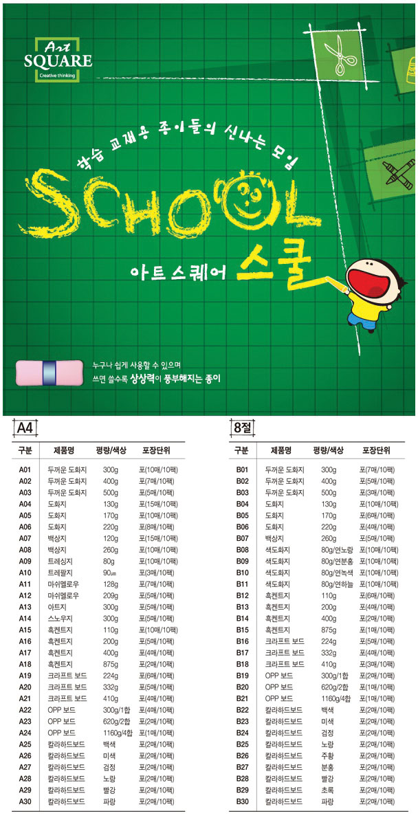 | 품명 및 모델명 | 아트스퀘어 스쿨 (A02-두꺼운 도화지. 400g) |