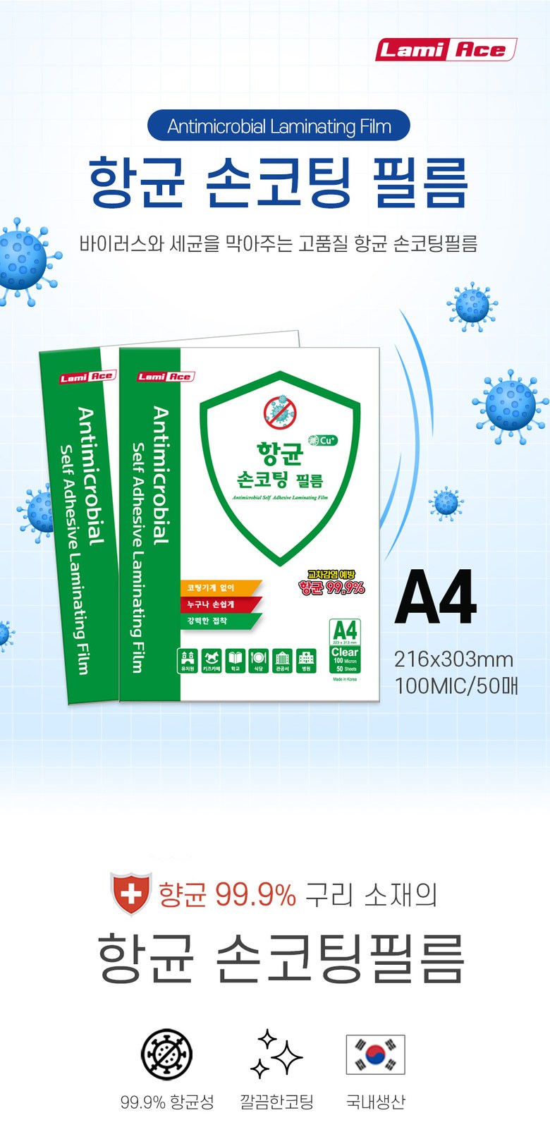 | 품명 및 모델명 | 항균 코팅지/라미에이스 항균 손코팅 필름 A4 [50매] |