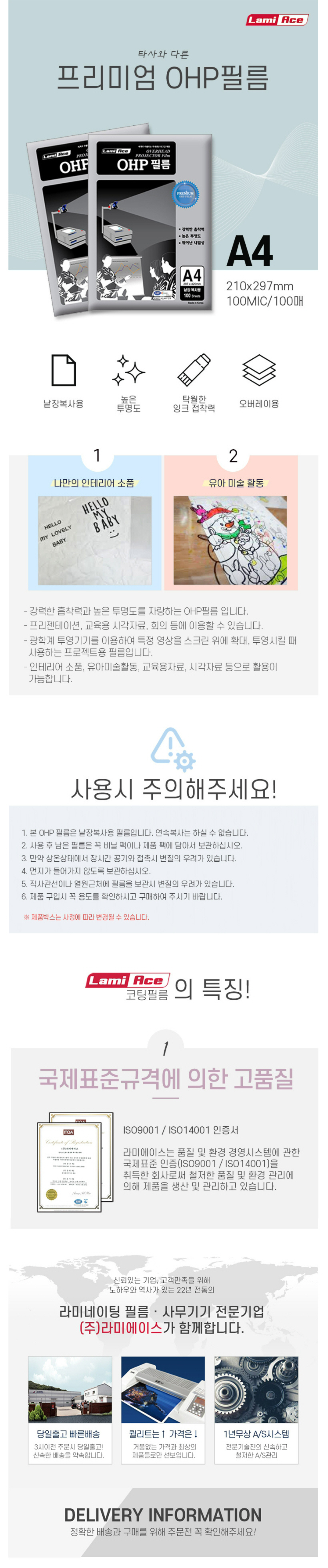 • 모델명라미에이스 OHP A4 100매(낱장...