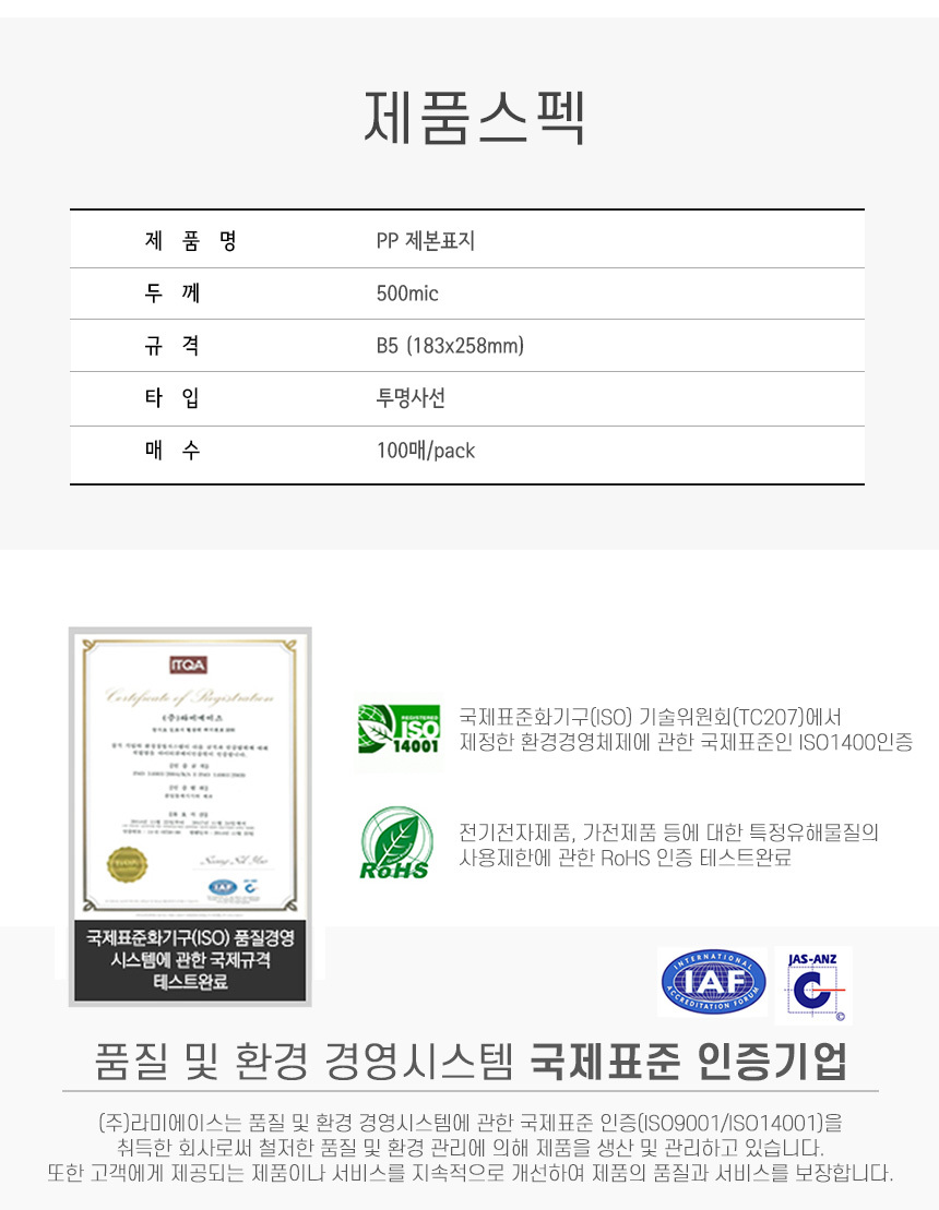 • 모델명라미에이스 PP제본표지