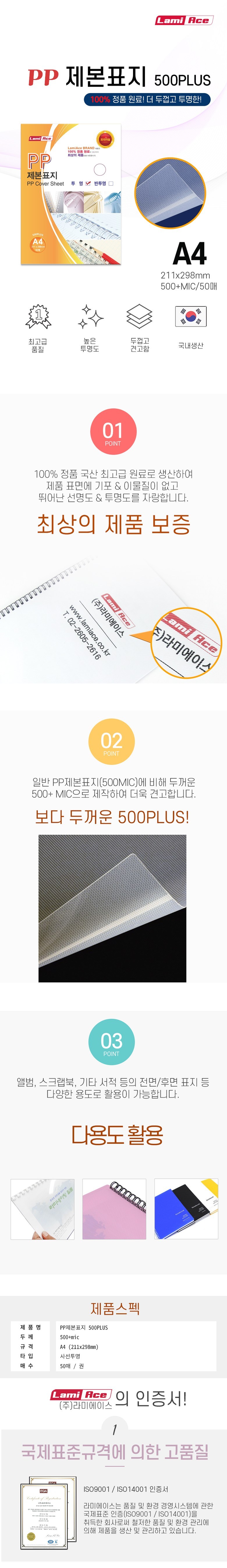 | 품명 및 모델명 | 라미에이스 PP제본표지 500mic 사선투명 A4 50매 |
