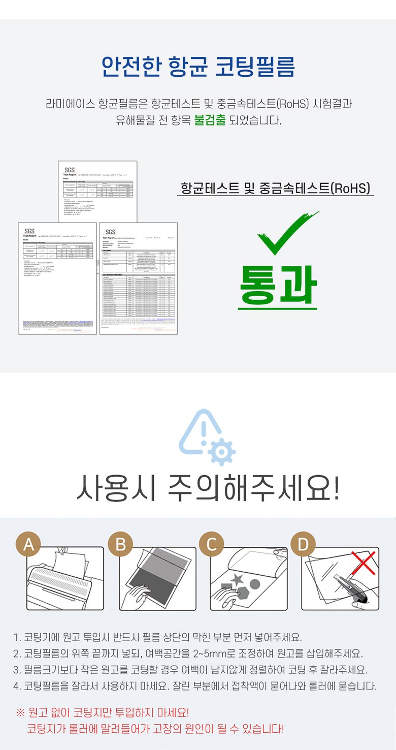 | 품명 및 모델명 | 항균 코팅지/라미에이스 항균 라미네이팅 필름 A3 [50매] |