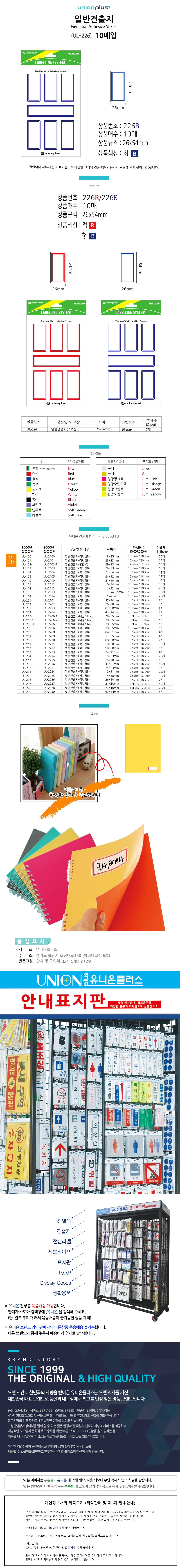 유니온 견출지 일반 26x54 UL-226 청색 10매입