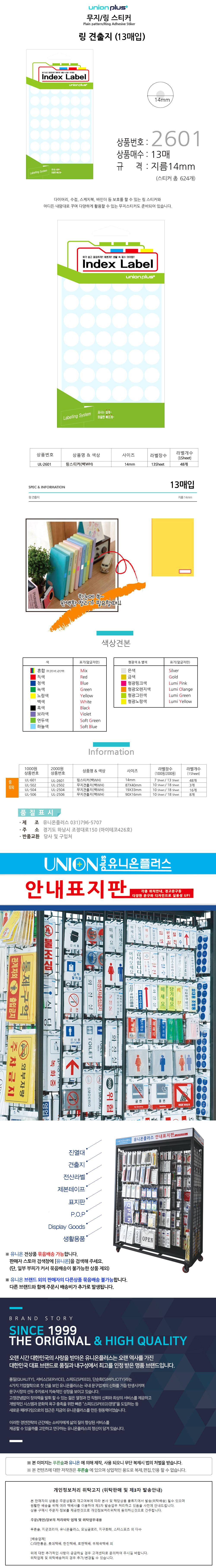 유니온 견출지 링 스티커 14mm UL-2601 백색 13매입
