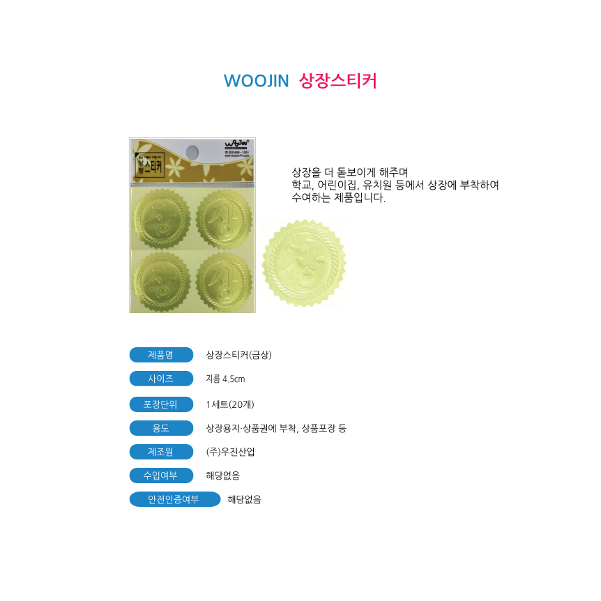 | 품명 및 모델명 | 상장스티커(금상 한글 지름45mm) |
