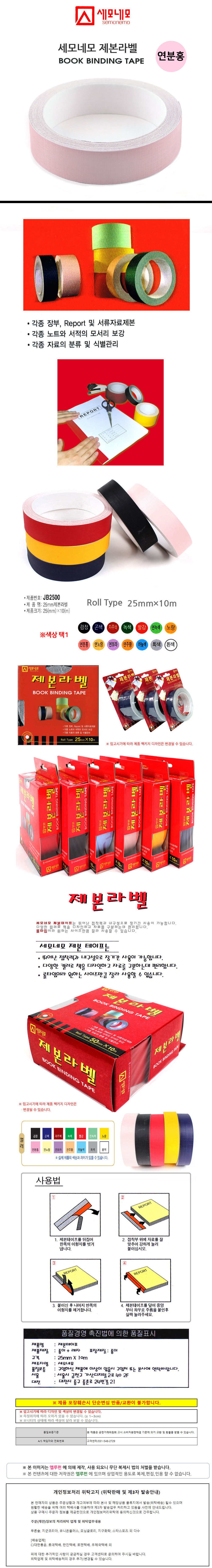 세모네모 제본 라벨 JB2500 25mmX10m 연분홍