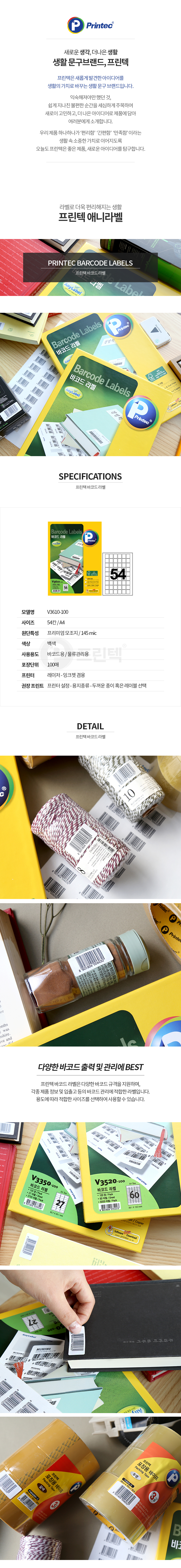 프린텍 V3610-100/바코드라벨/54칸/100매