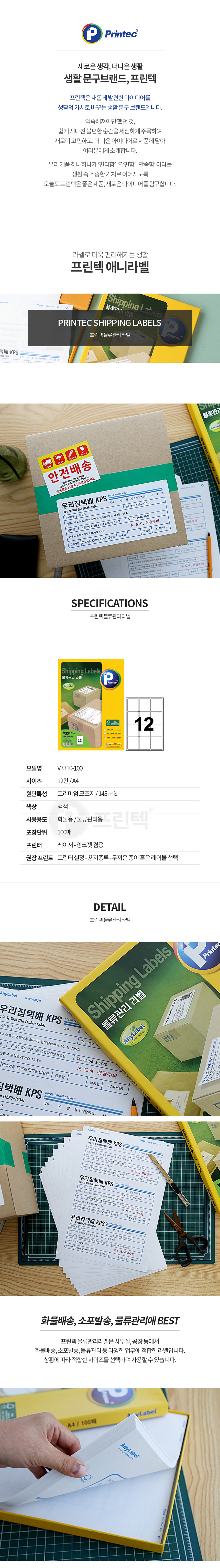 프린텍 V3310-100/물류관리라벨/12칸/100매