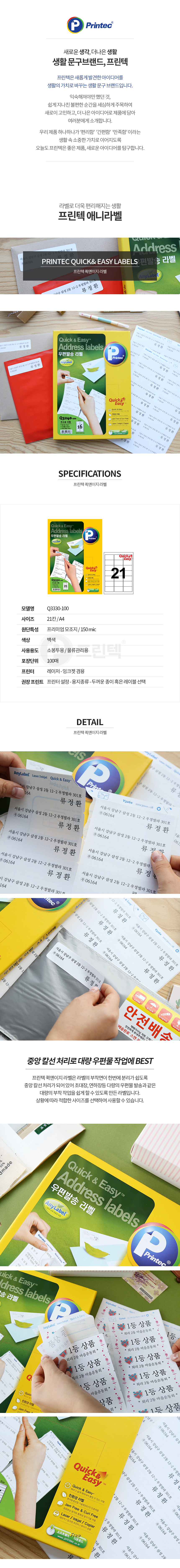 프린텍 Q3330-100/퀵앤이지라벨/21칸/100매