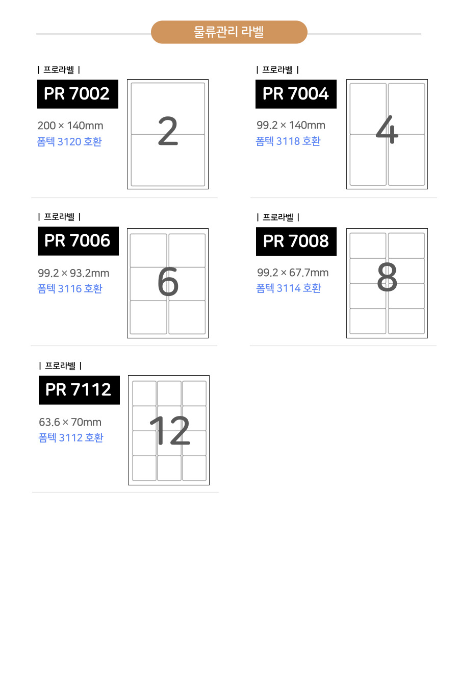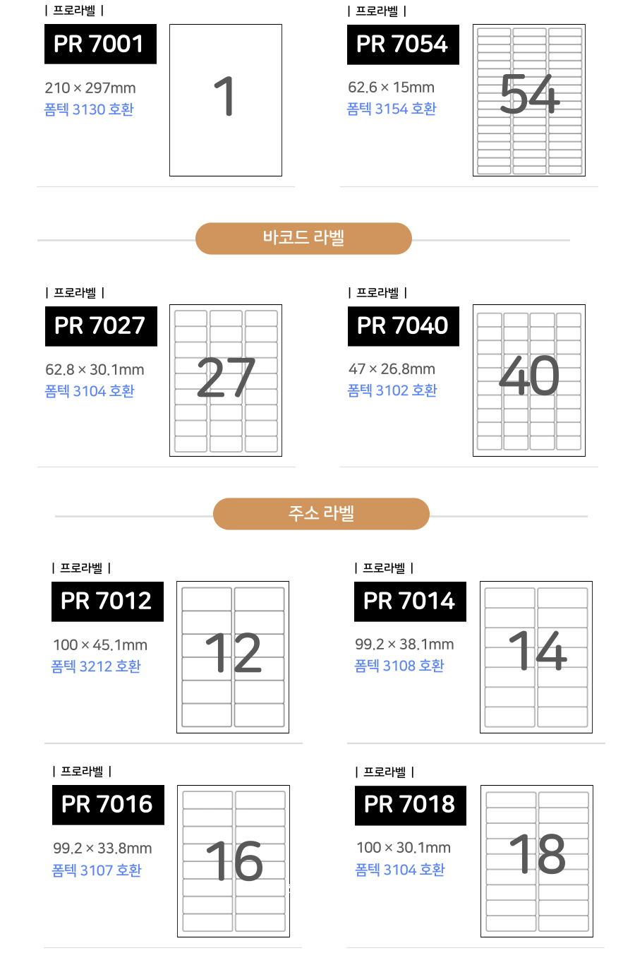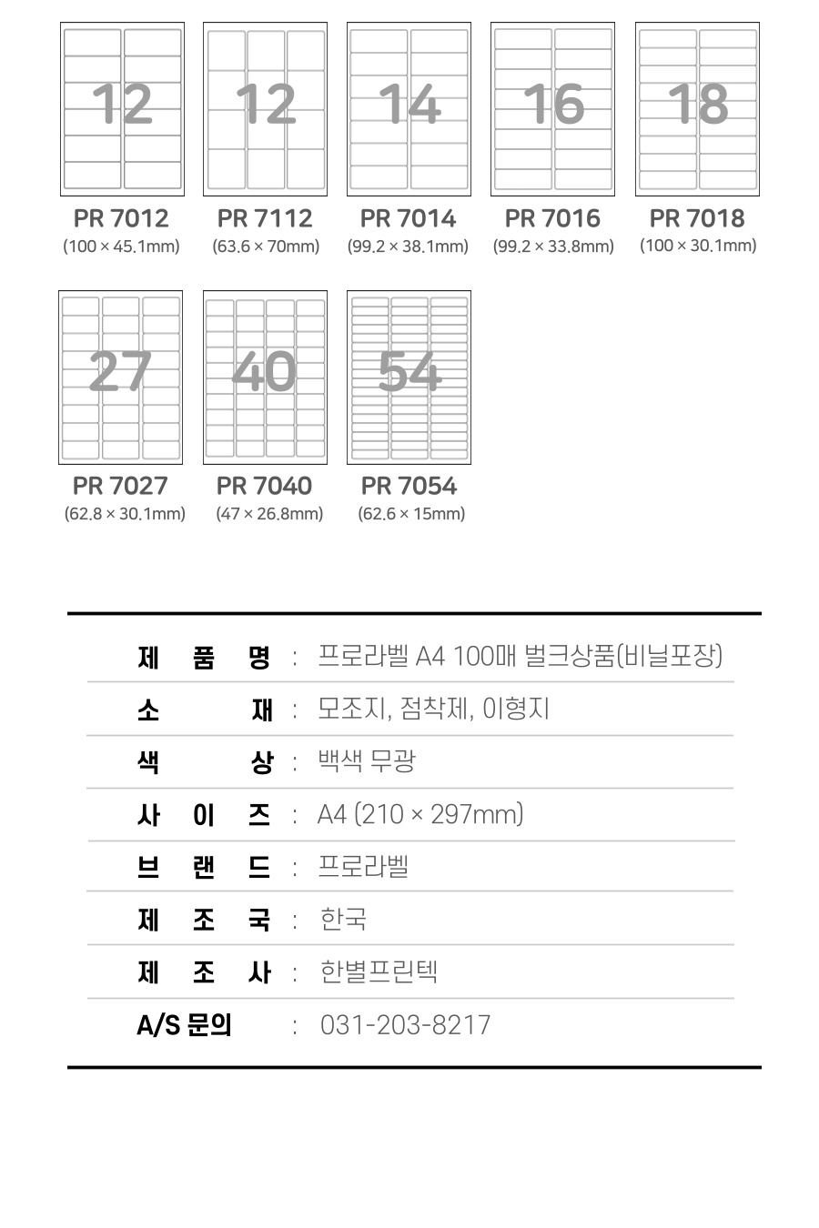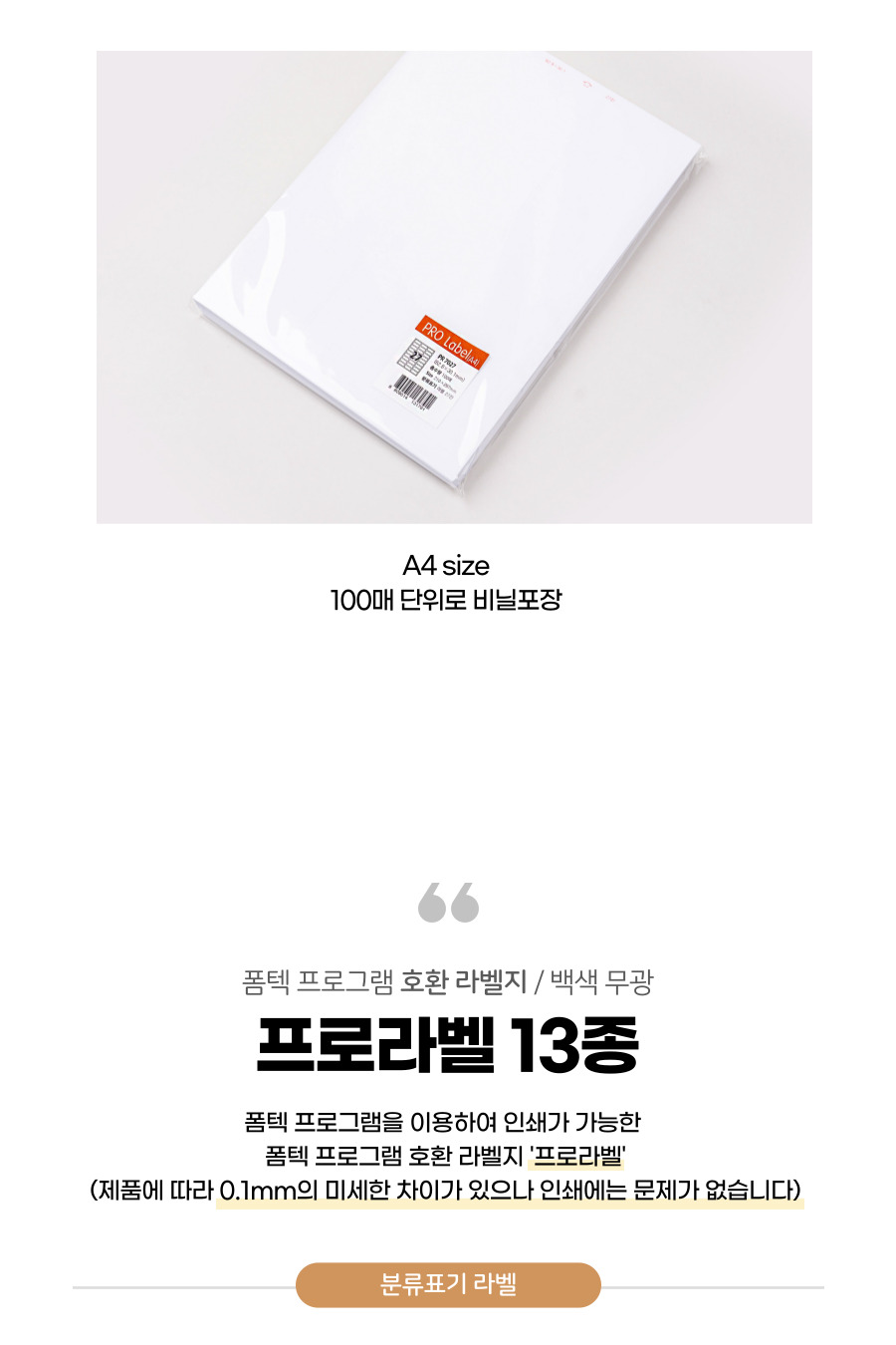 | 품명 및 모델명 | 프로라벨지 13종 A4 100매 PR7001 벌크 / 폼텍호환 |