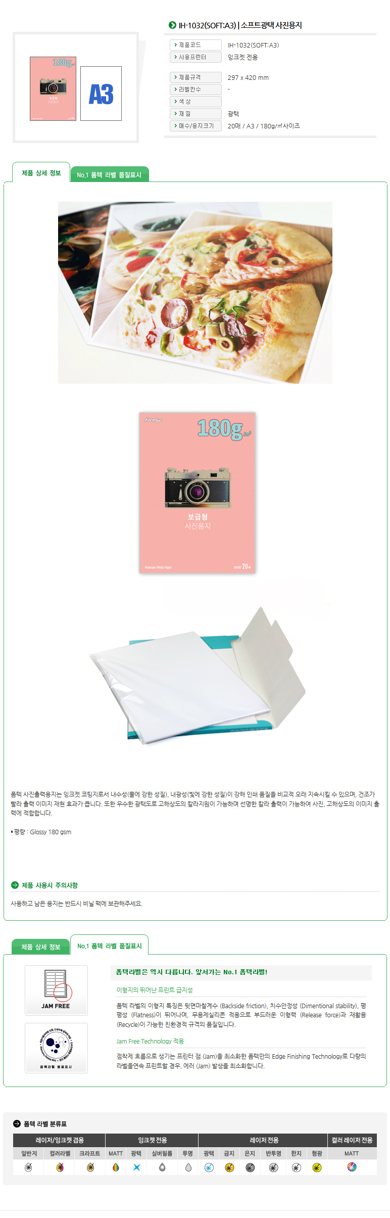 | 품명 및 모델명 | 폼텍 A3 소프트 광택 사진용지 IH-1032 |