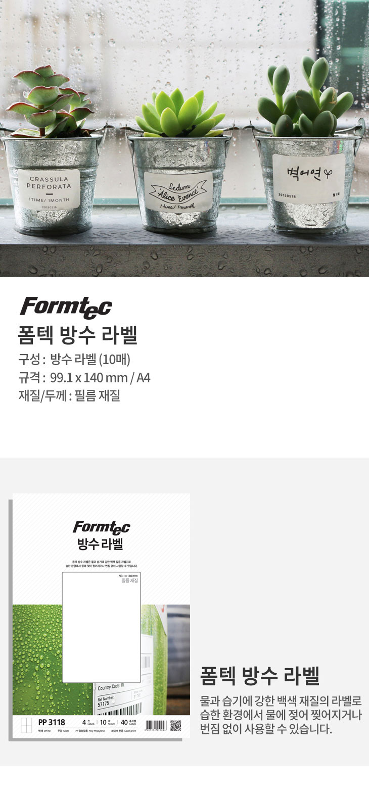 | 품명 및 모델명 | 폼텍 레이저용 방수라벨 pp-3118 4칸 10매 |