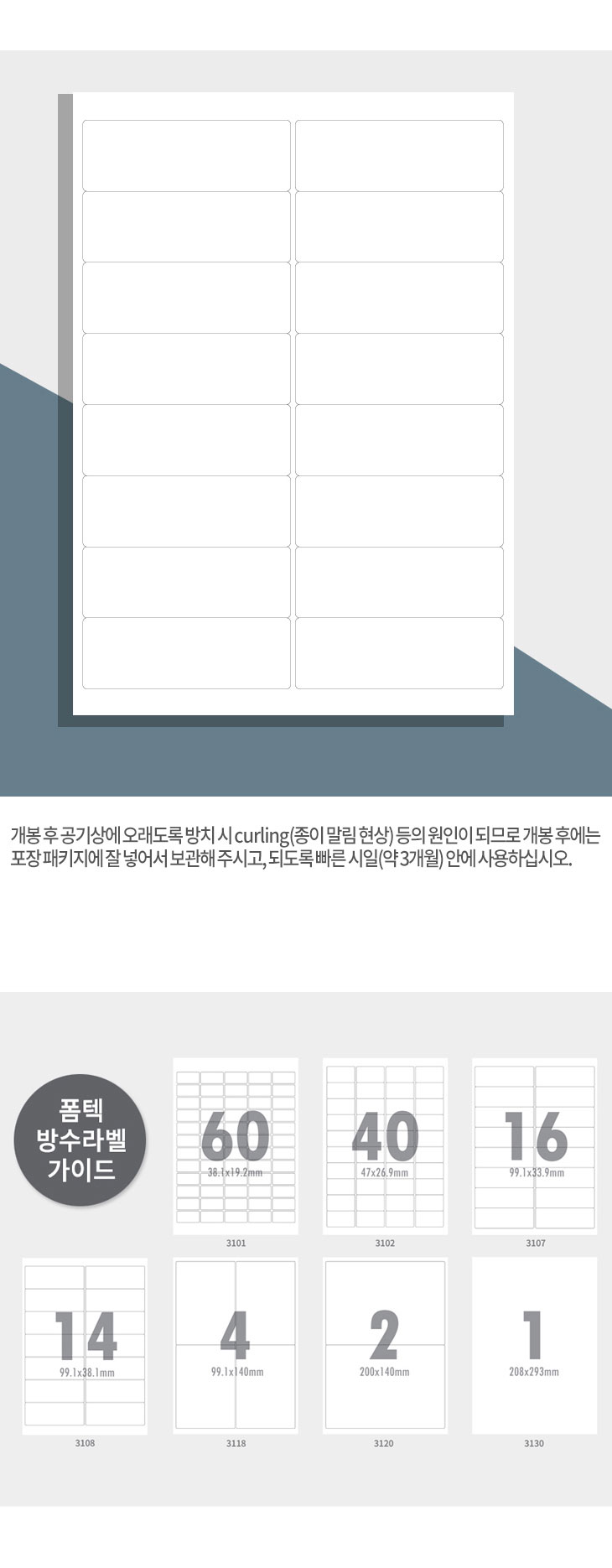 | 품명 및 모델명 | 폼텍 레이저용 방수라벨 pp-3107 16칸 10매 |