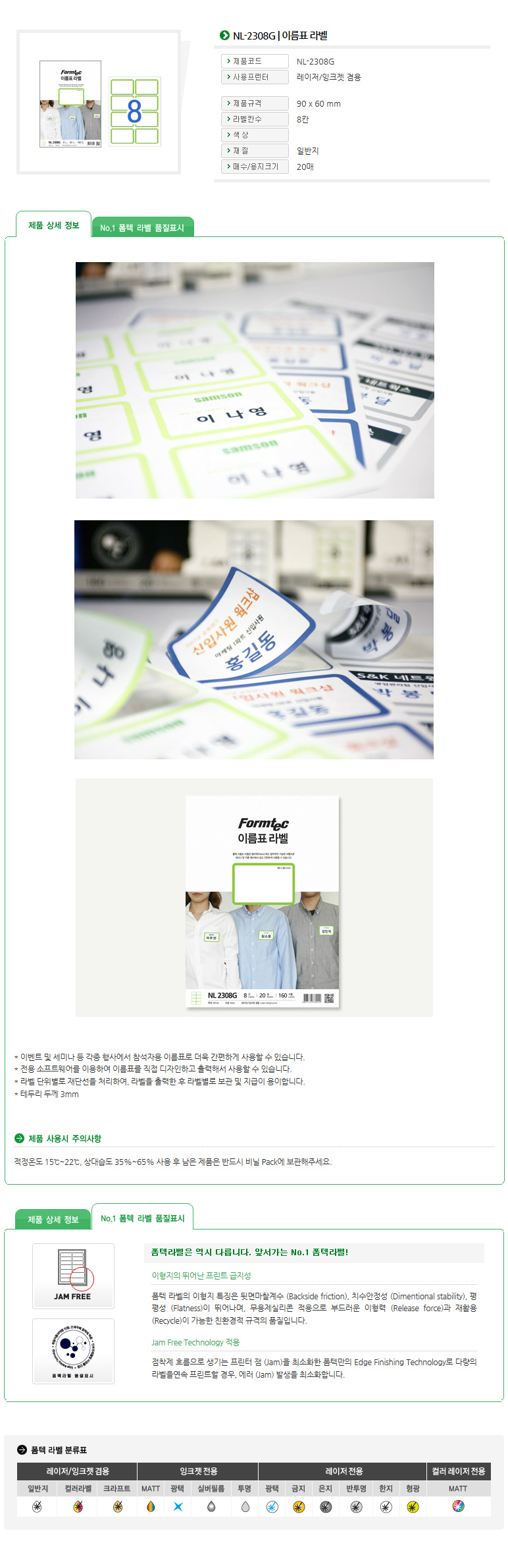 | 품명 및 모델명 | 라벨지/폼텍 A4 이름표라벨 NL-2308G 녹색 8칸 20매 총160칸 |