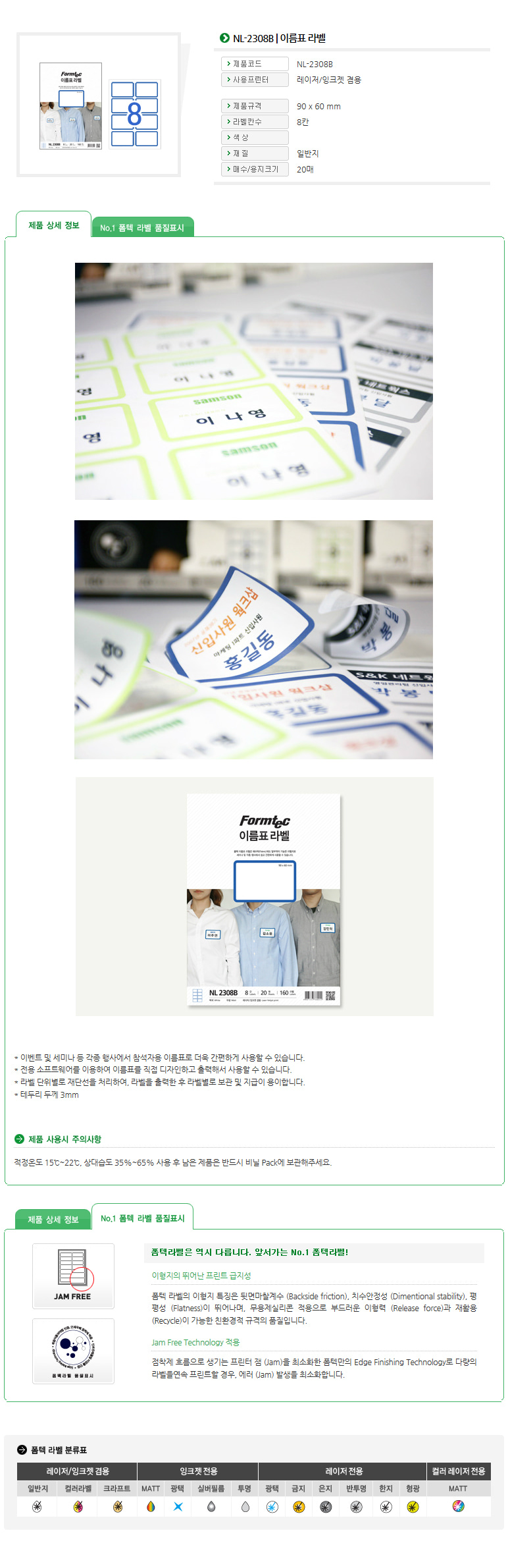 | 품명 및 모델명 | 라벨지/폼텍 A4 이름표라벨 NL-2308G 파랑 8칸 20매 총160칸 |