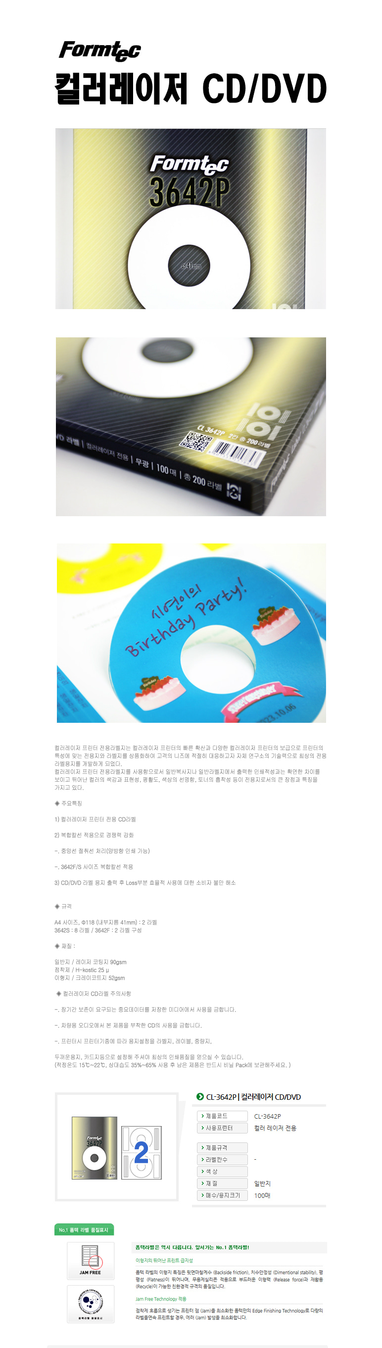 폼텍 CD DVD라벨 CL-3642P 2칸 100매