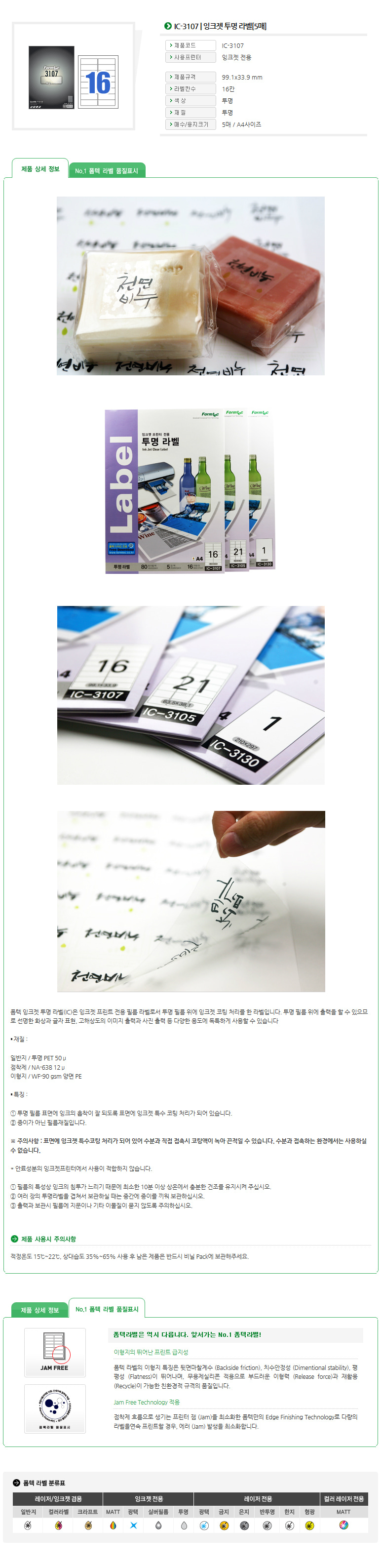 품명 및 모델명 라벨지/한국폼텍 IC-3107 [16라벨/5매]