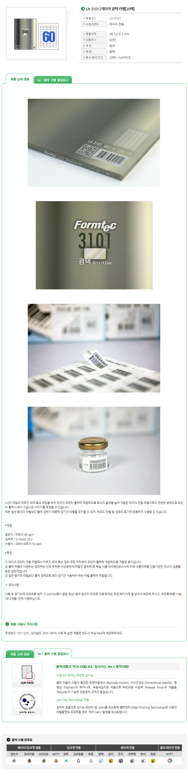 품명 및 모델명 라벨지/한국폼텍 LA-3101 [60칸/20매]