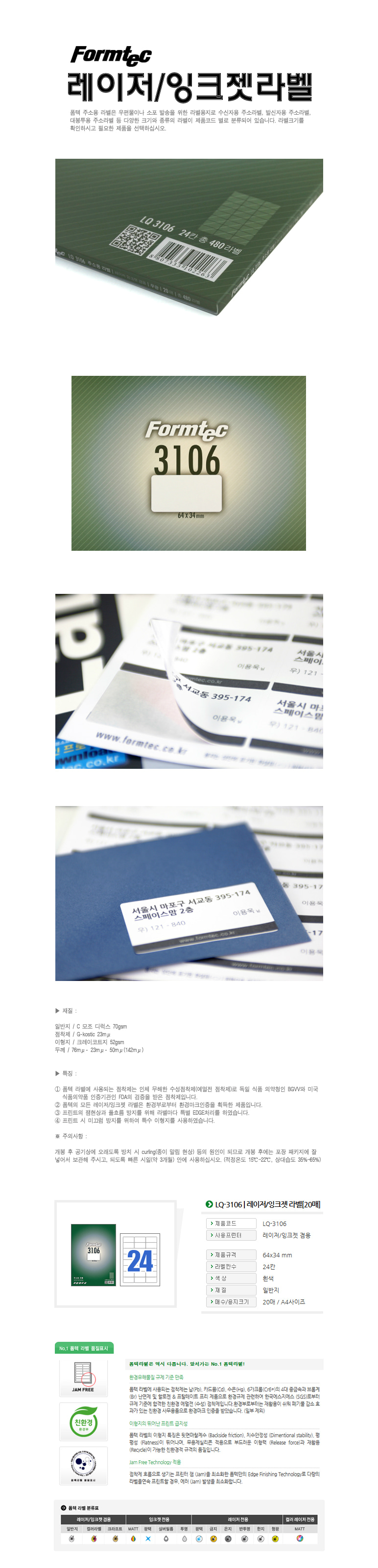 | 품명 및 모델명 | 라벨지/한국폼텍 LQ-3106 [24칸/20매] |