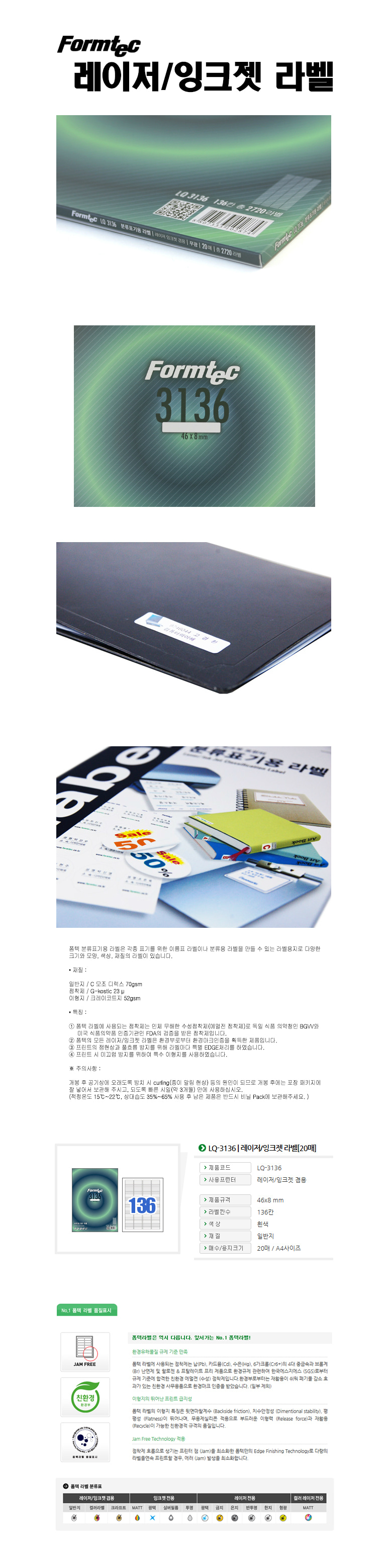 | 품명 및 모델명 | 라벨지/한국폼텍 LQ-3136 [136칸/20매] |
