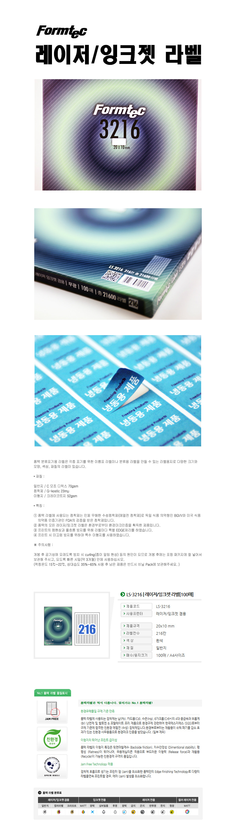 | 품명 및 모델명 | 라벨지/한국폼텍 LS-3216 [216칸/100매] |