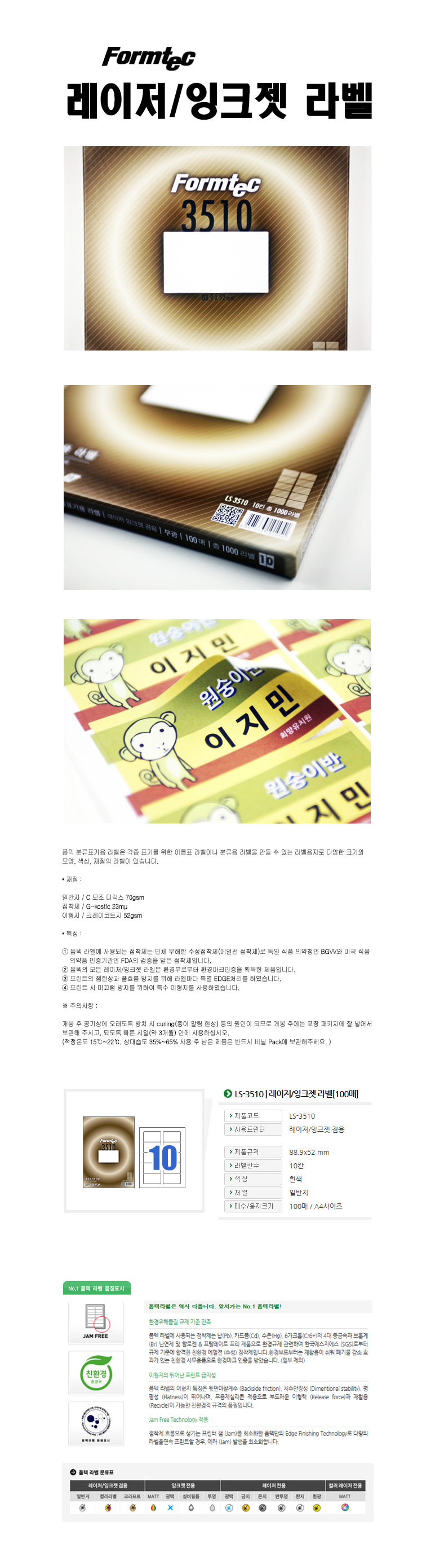 | 품명 및 모델명 | 라벨지/한국폼텍 LS-3510 [10칸/100매] |