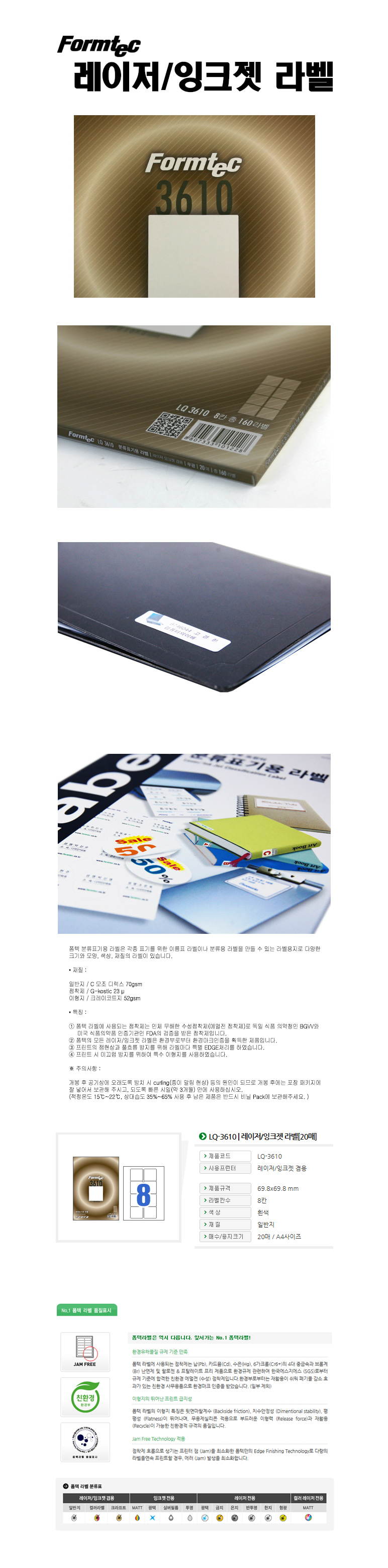 품명 및 모델명 라벨지/한국폼텍 LQ-3610 [8칸/20매]