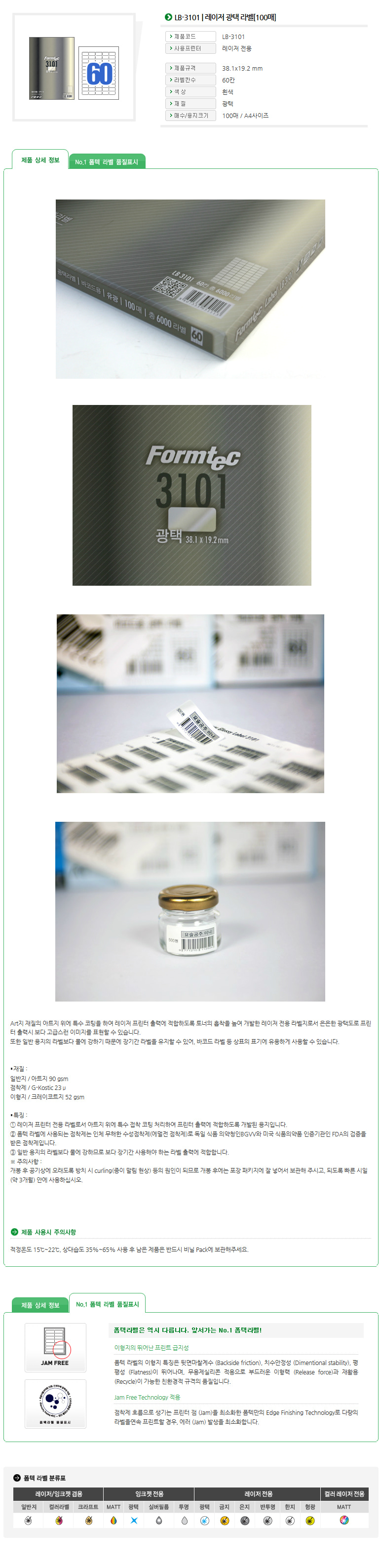 | 품명 및 모델명 | 라벨지/한국폼텍 LB-3101 [60칸/100매] |