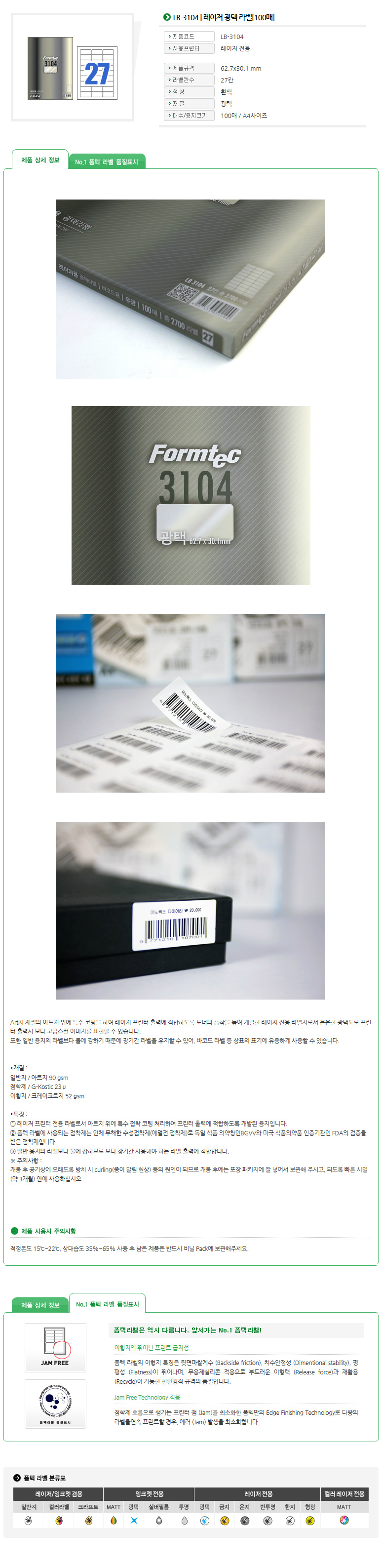 | 품명 및 모델명 | 라벨지/한국폼텍 LB-3104 [27칸/100매] |