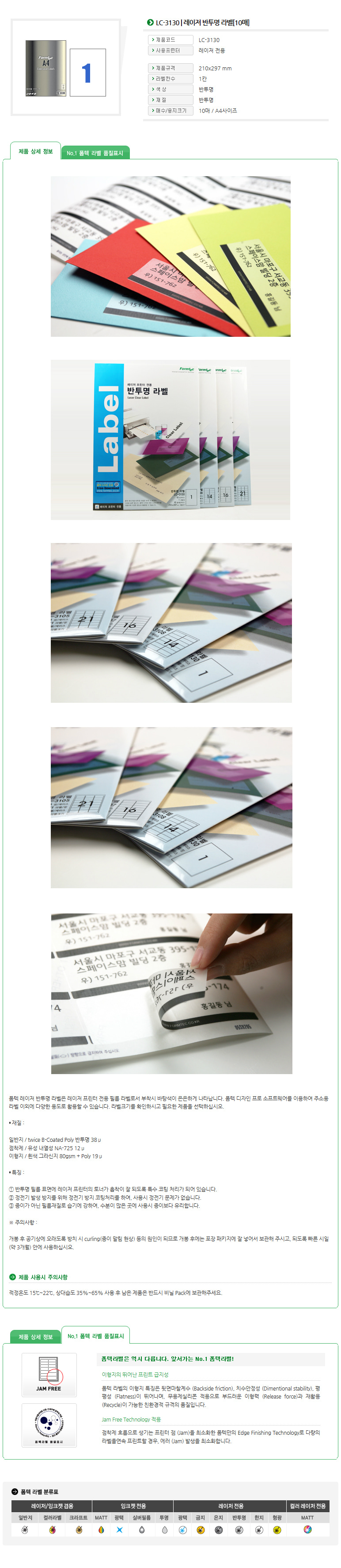 품명 및 모델명 라벨지/한국폼텍 LC-3130 [1칸/10매]