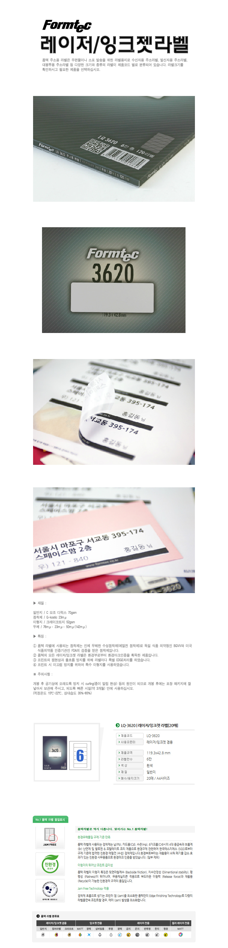 | 품명 및 모델명 | 라벨지/한국폼텍 LQ-3620 [6칸/20매] |