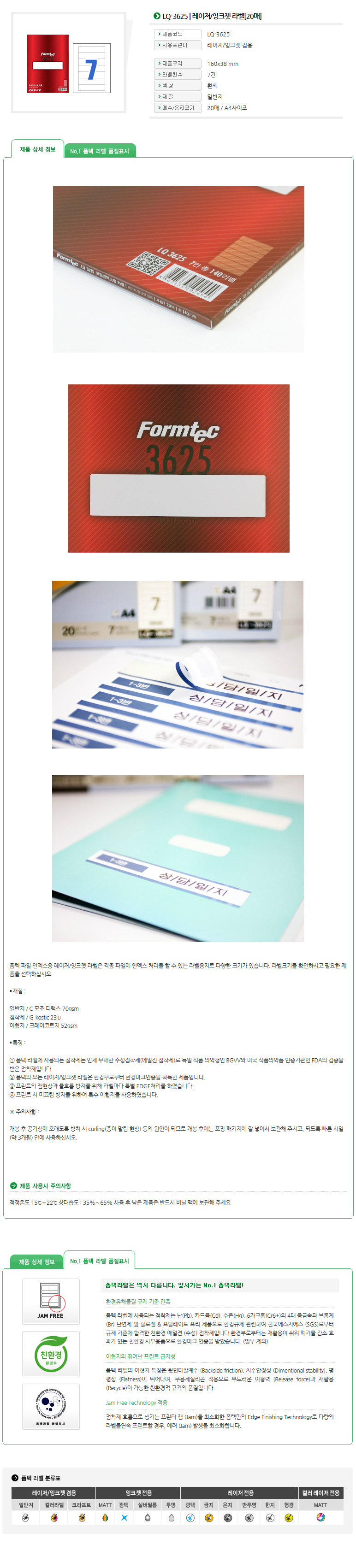 | 품명 및 모델명 | 라벨지/한국폼텍 LQ-3625 [7칸/20매] |