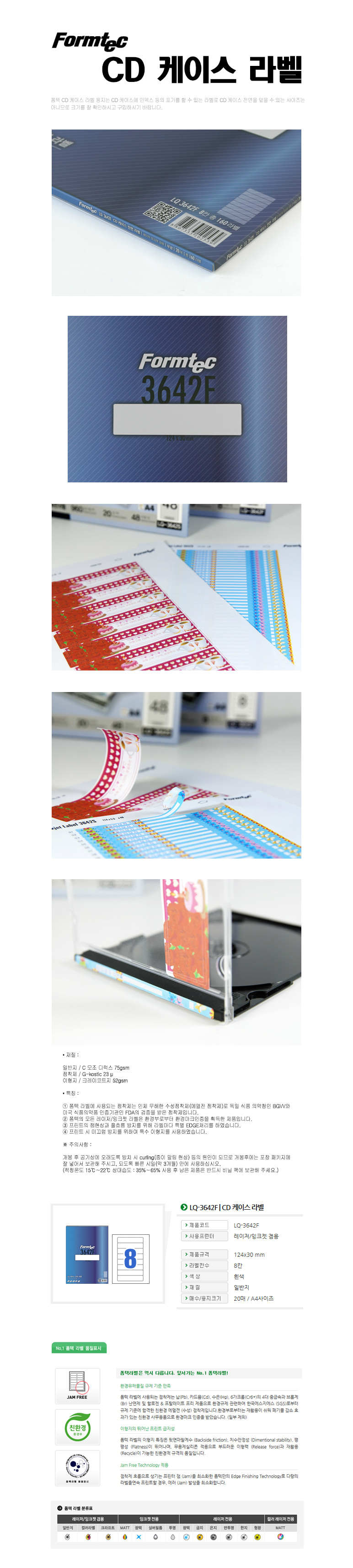 폼텍 A4 CD케이스용라벨 LQ-3642F(LQ-3660호환) 8칸 20매