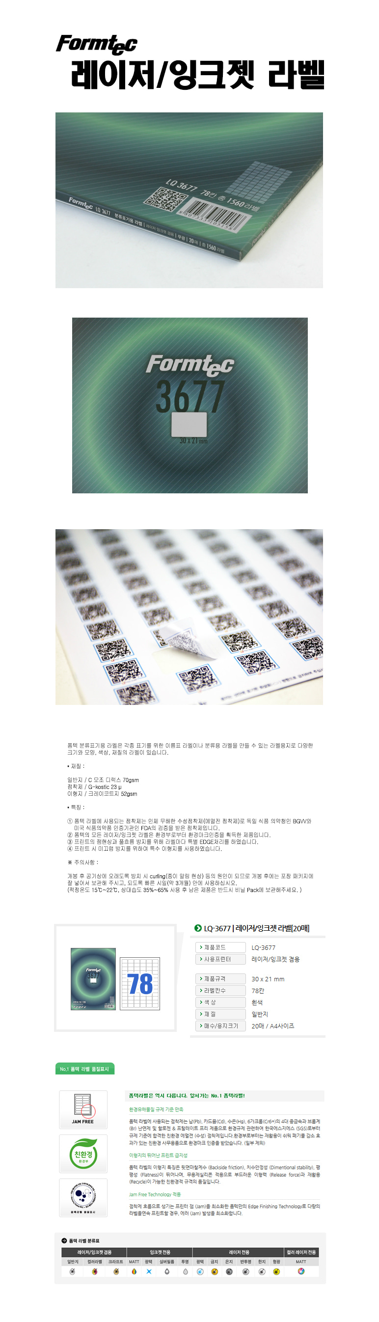 품명 및 모델명 라벨지/한국폼텍 LQ-3677 [78칸/20매]