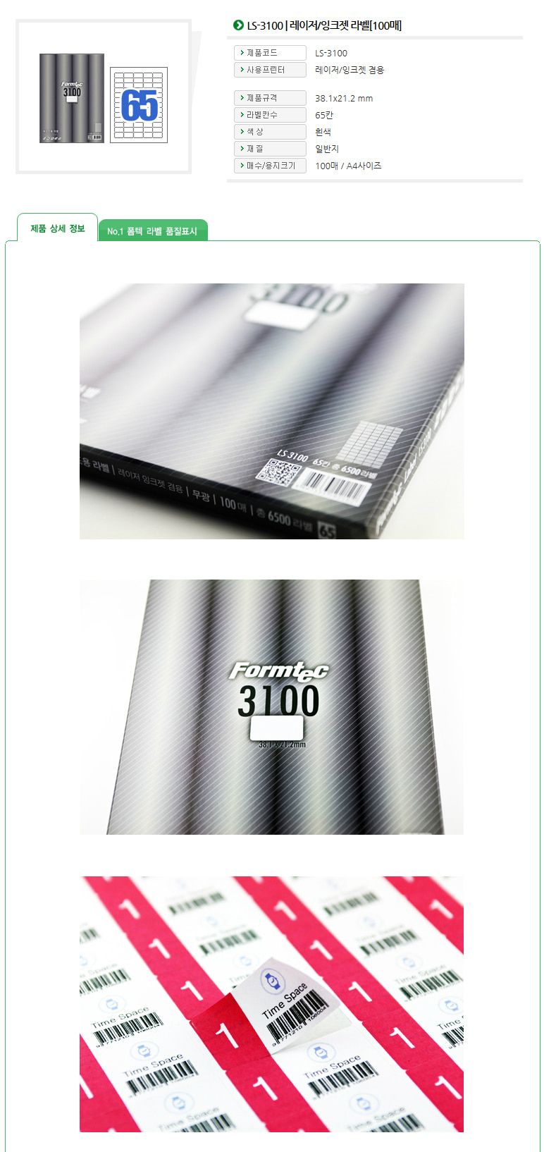 | 품명 및 모델명 | 라벨지/한국폼텍 LS-3100 [65칸/100매] |