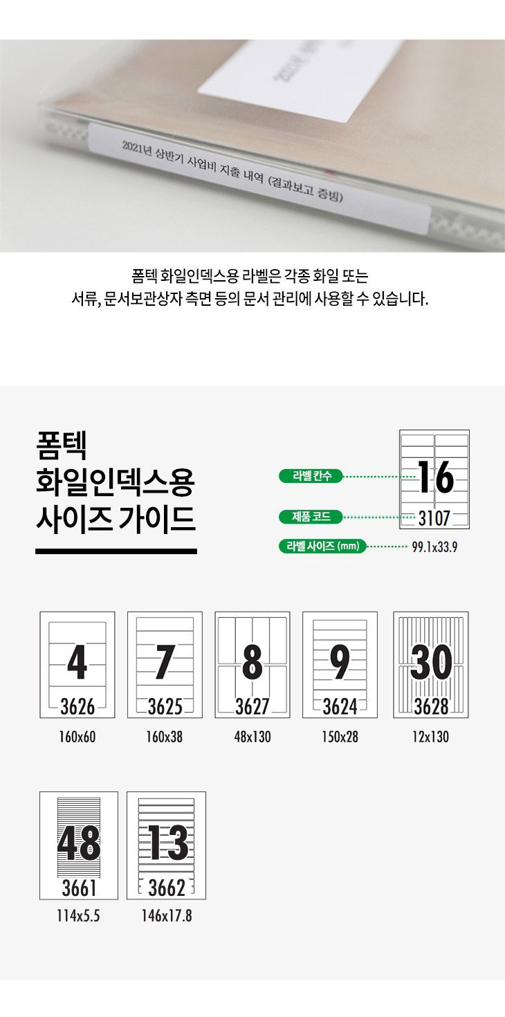 • 모델명폼텍 A4 화일인덱스용라벨 LS-36...