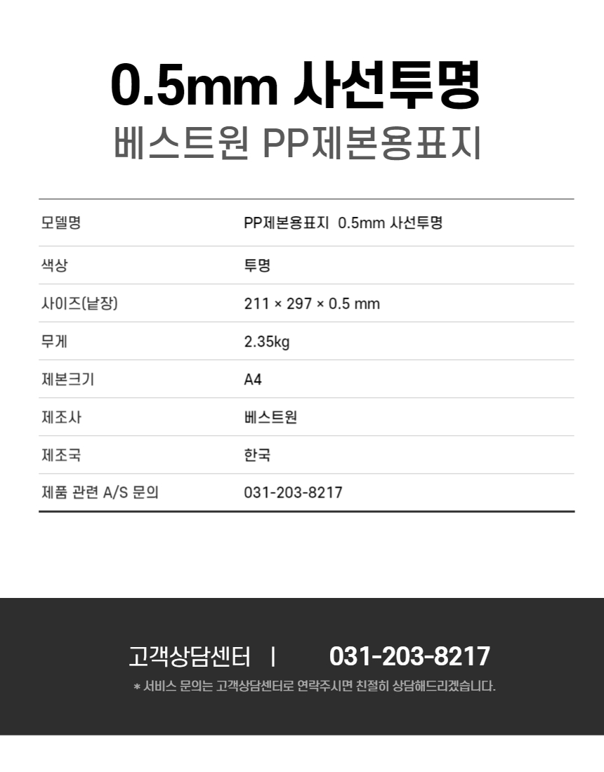 • 모델명베스트원 PP제본표지 사선투명 0.5...