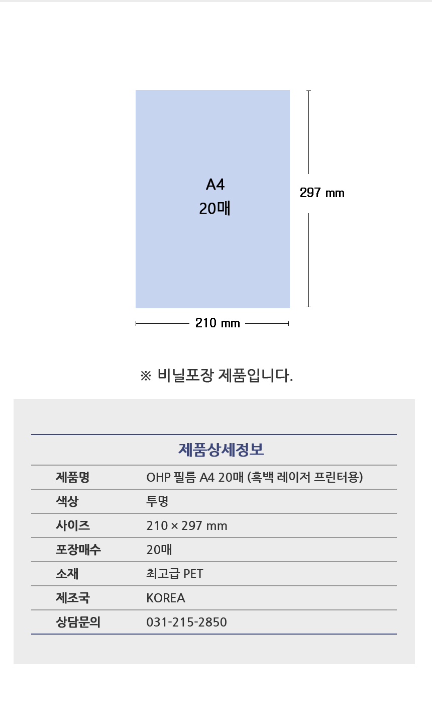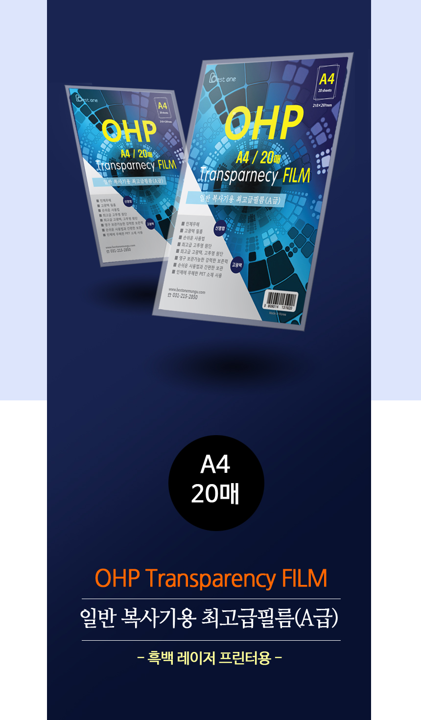 • 모델명베스트원 OHP 필름 A4 20매 흑...