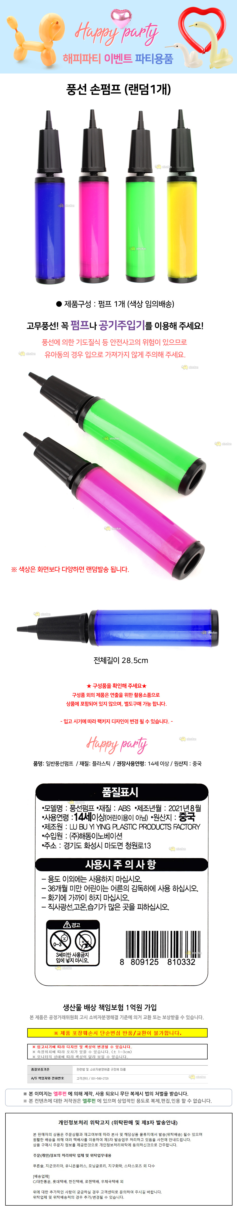 해피파티 풍선 손펌프 랜덤1개