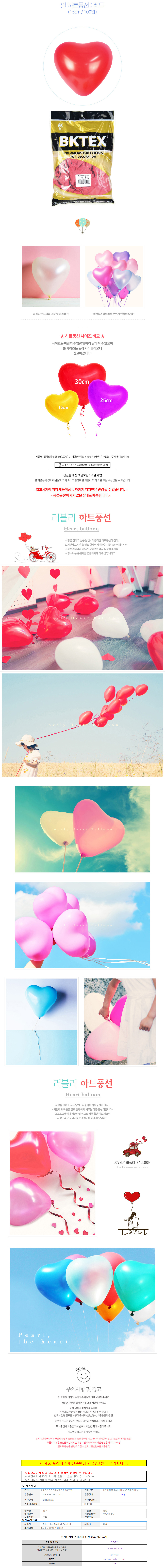 해피파티 펄 하트풍선 15cm 100개입 레드