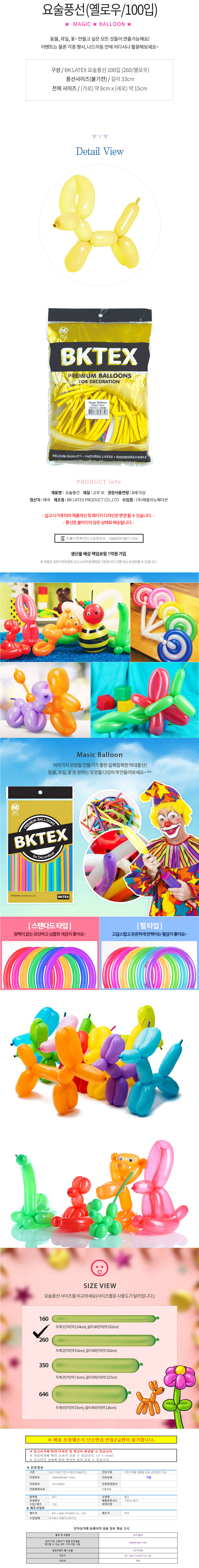 해피파티 스탠다드 요술풍선 100개입 옐로우