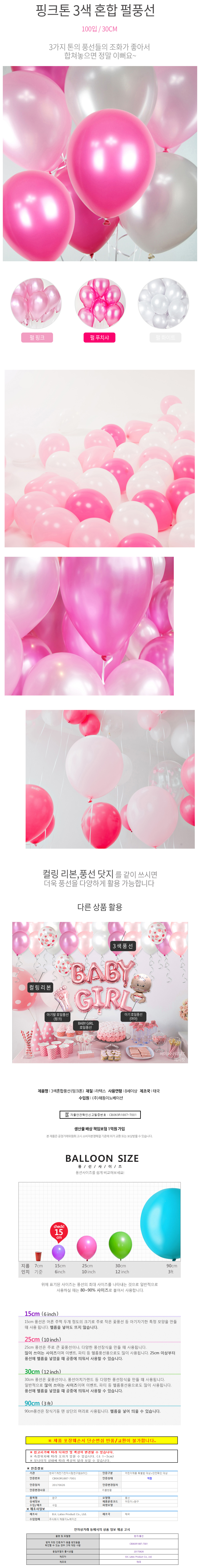해피파티 풍선 3색 펄 혼합 라운드 30cm 100개입 핑크톤
