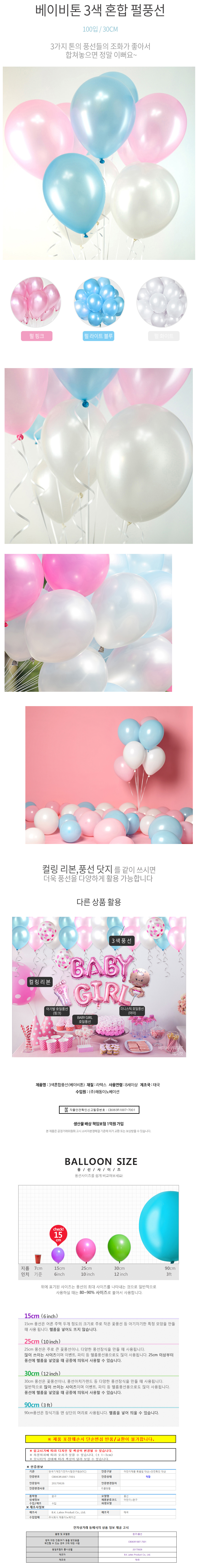 해피파티 풍선 3색 펄 혼합 라운드 30cm 100개입 베이비톤