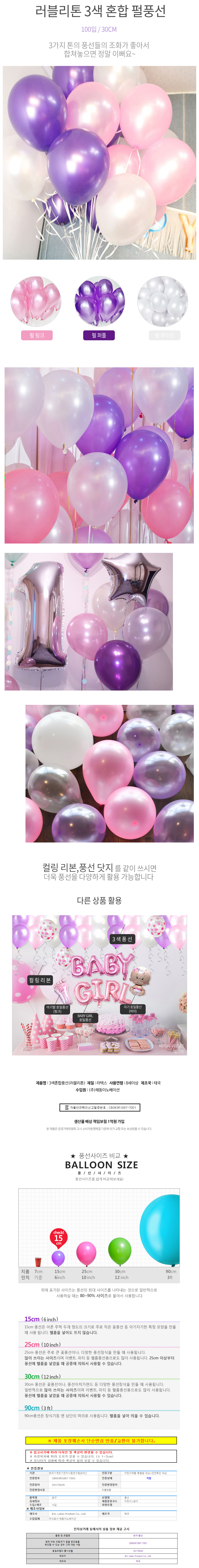 해피파티 풍선 3색 펄 혼합 라운드 30cm 100개입 러블리톤