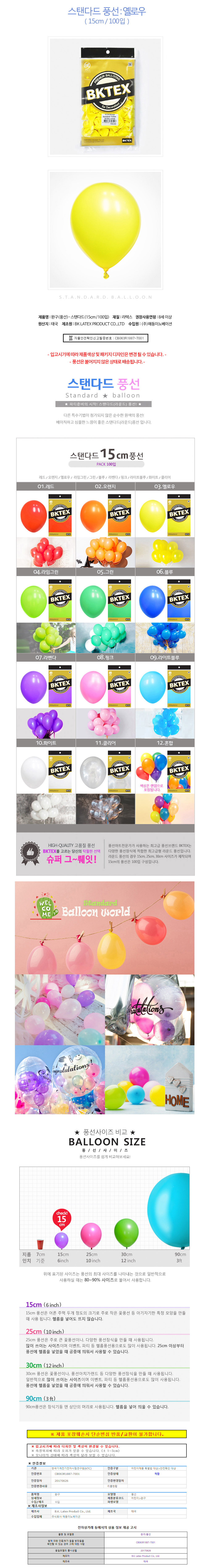 해피파티 풍선 일반 라운드 15cm 100개입 옐로우