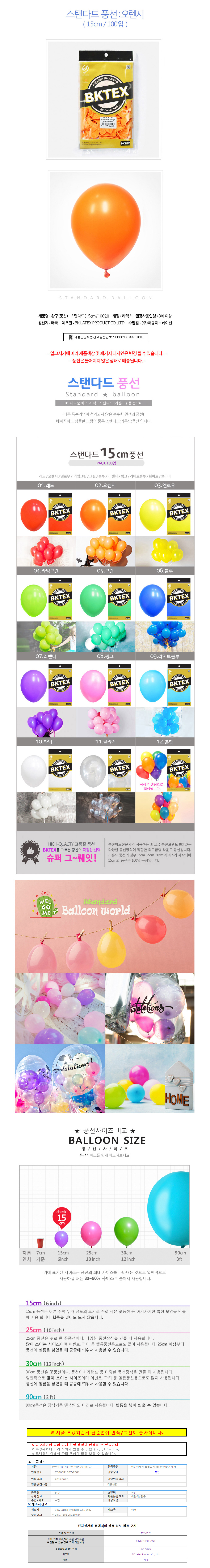 해피파티 풍선 일반 라운드 15cm 100개입 오렌지