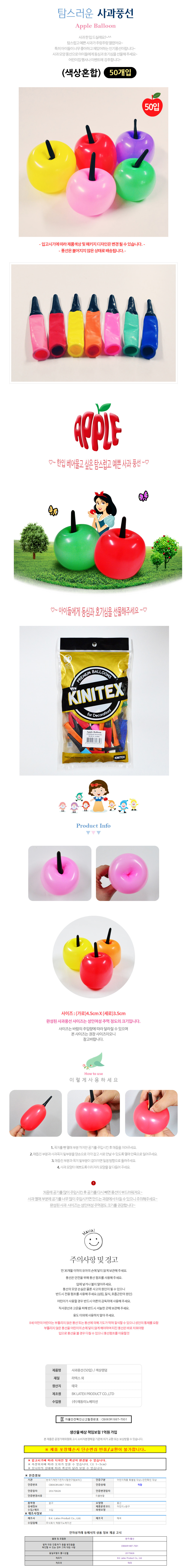 해피파티 사과 풍선 50개입 색상혼합