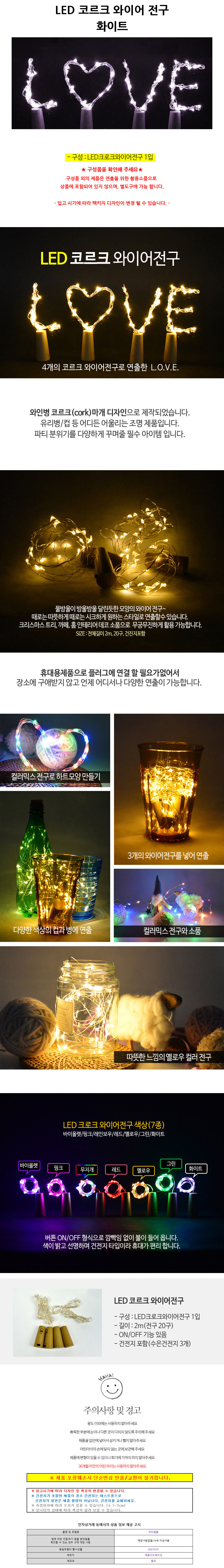 해피파티 LED 코르크 와이어 전구 화이트
