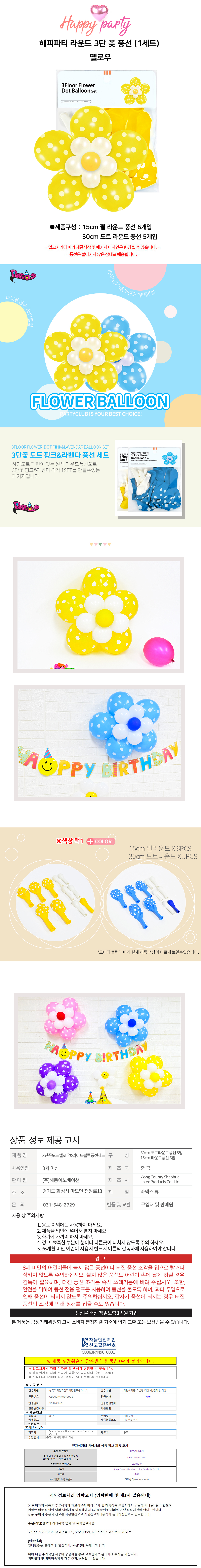 해피파티 라운드 3단 꽃 풍선 1세트 옐로우