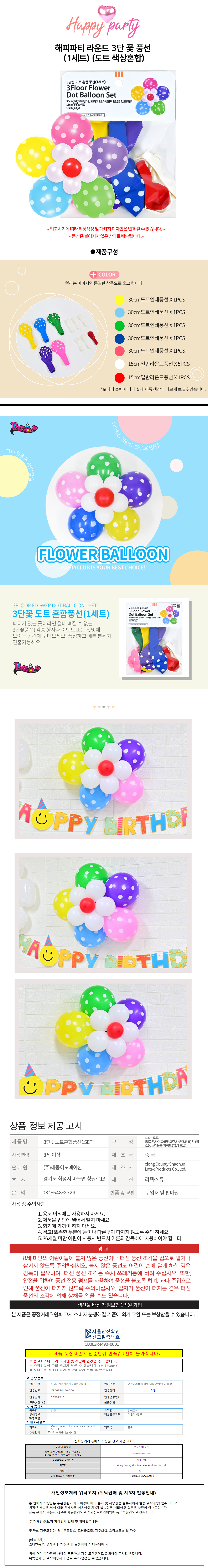 해피파티 라운드 3단 꽃 풍선 1세트 도트 색상혼합